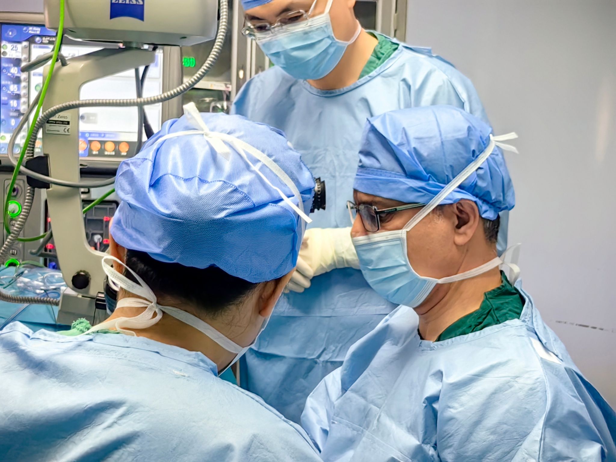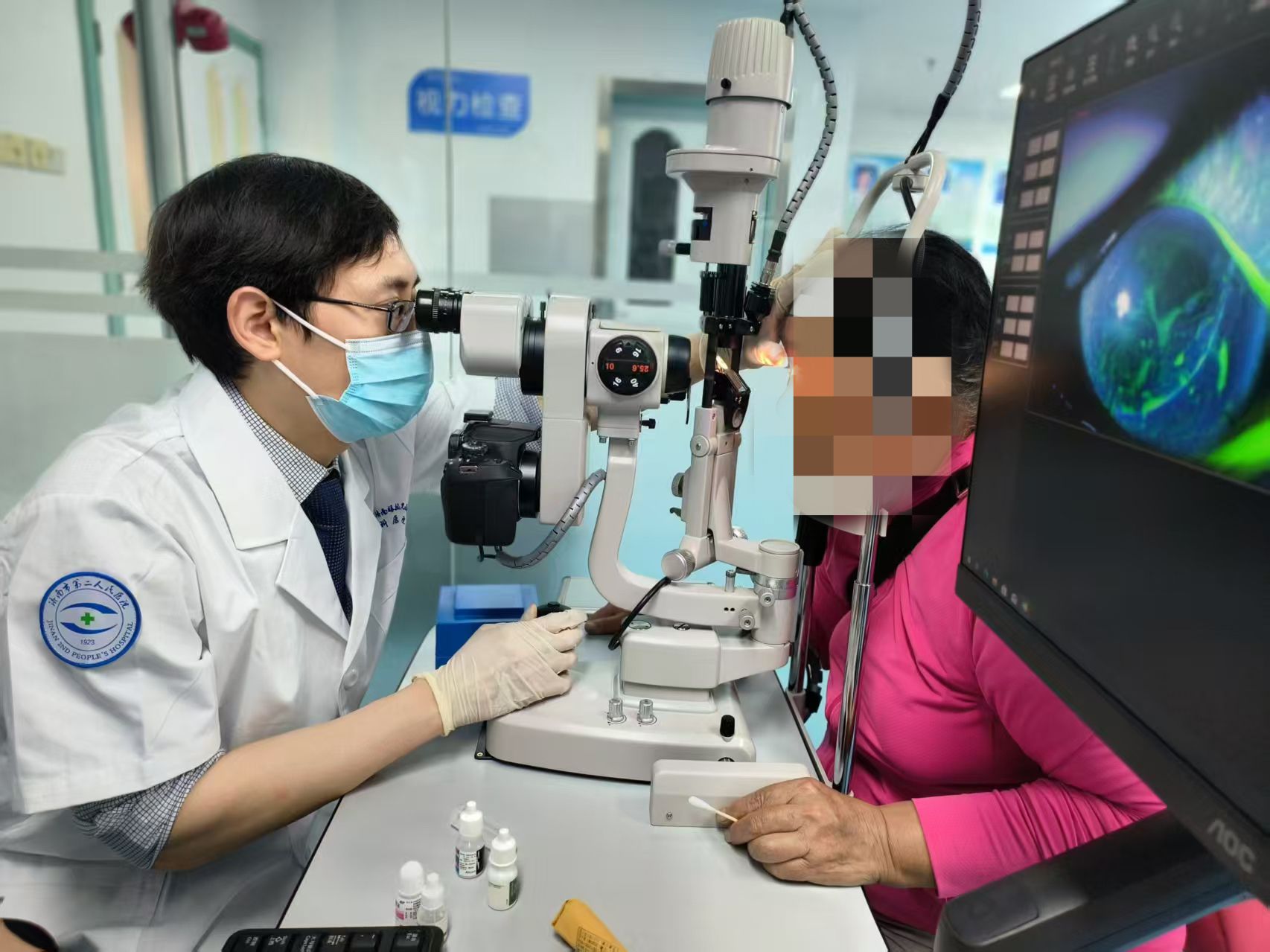 )为就诊患者提供全程双语翻译服务,中美医务人员耐心解答患者疑问,提供个性化诊疗方案。在手术室里,外方专家与中方医生密切配合,共同参与复杂眼科手术,交流分享国际先进手术技巧和各自经验。