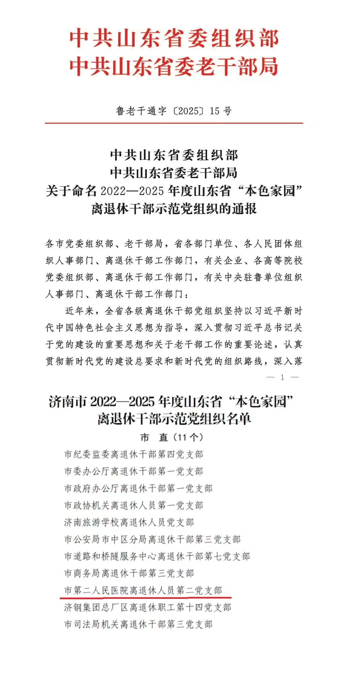 近日,中共山东省委组织部、中共山东省委老干部局联合下发《关于命名2022—2025年度山东省“本色家园”离退休干部示范党组织的通报》,中共萝莉社