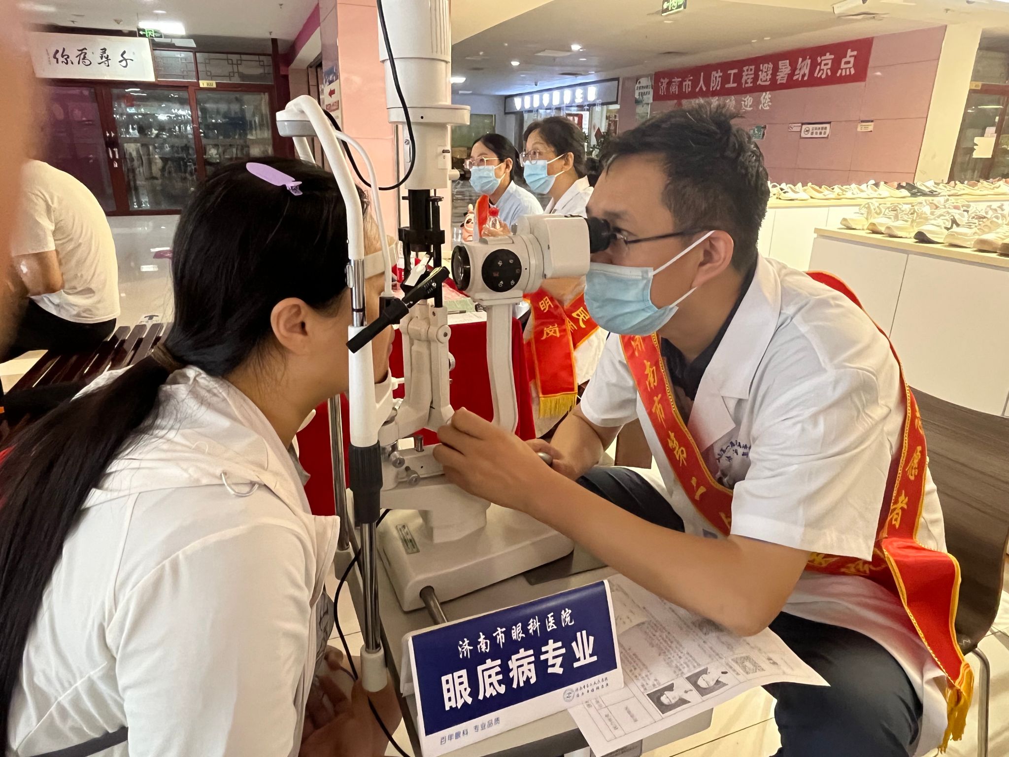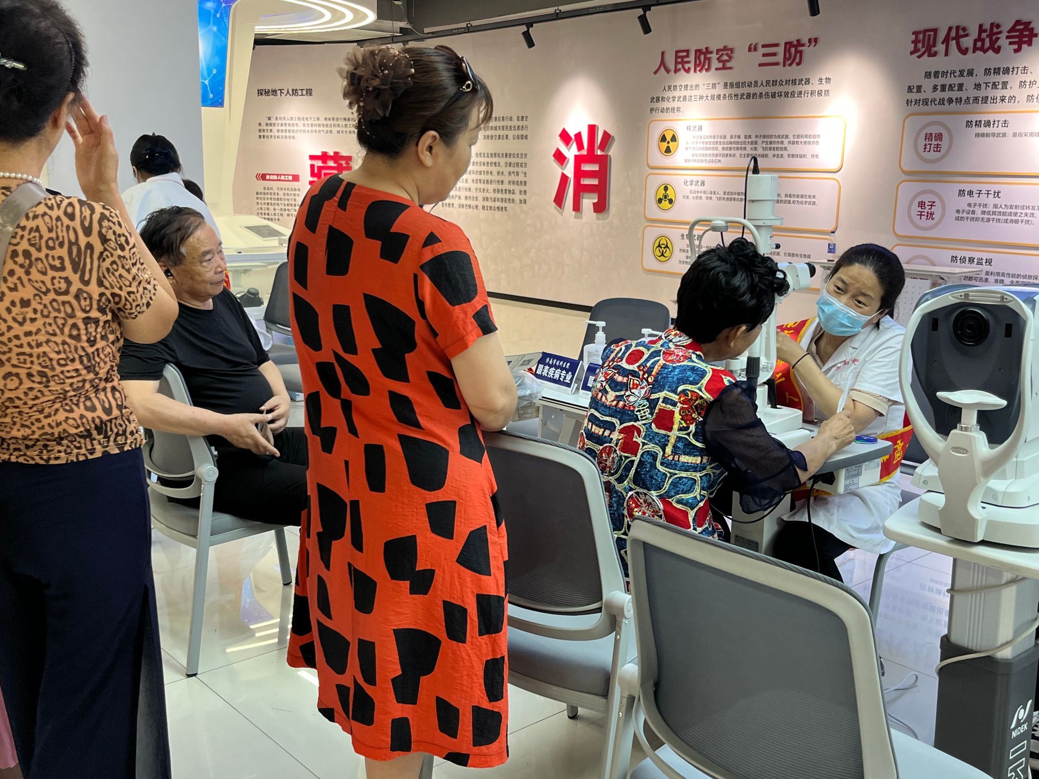 7月15日下午,义诊活动第二站走进了槐荫区纬十二路人防工程。此次活动的专家团队实力雄厚,包括眼外伤科副主任、眼科主任医师盛艳娟,眼表疾病专业副主任医师位宁,中医眼科副主任、副主任医师宿艳等多位资深医师。她们在眼科领域有着丰富的临床经验和深厚的学术造诣,为市民提供了高质量的医疗服务。对于检查中发现的眼部疾患需要治疗的患者,医院还建立了眼健康档案,提供后续无缝衔接的治疗服务。除了专业的医疗服务,活动现场还设置了健康宣教环节。志愿者们向市民发放各类宣教材料,普及基础性眼科健康知识,帮助他们建立科学护眼理念。