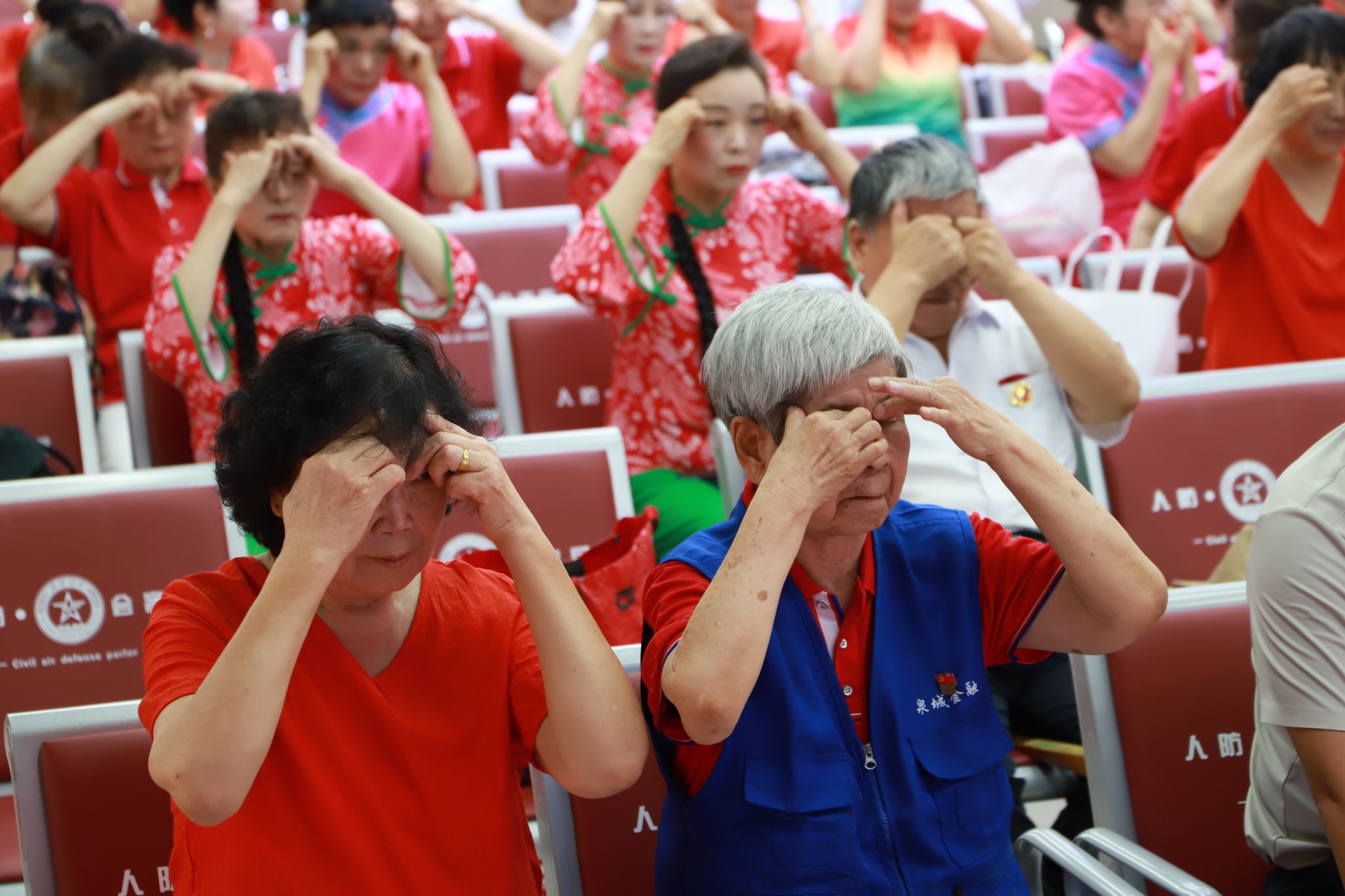 活动期间,人防工程内循环播放起了眼保健操和干眼操的视频教程。在炎炎夏日,长时间面对电子屏幕已成为许多人的日常,这也导致了视疲劳、干眼症等眼部问题的频发。通过规律的眼部按摩和眨眼训练,市民们可以在享受清凉的同时,有效缓解视疲劳,预防干眼症的发生。