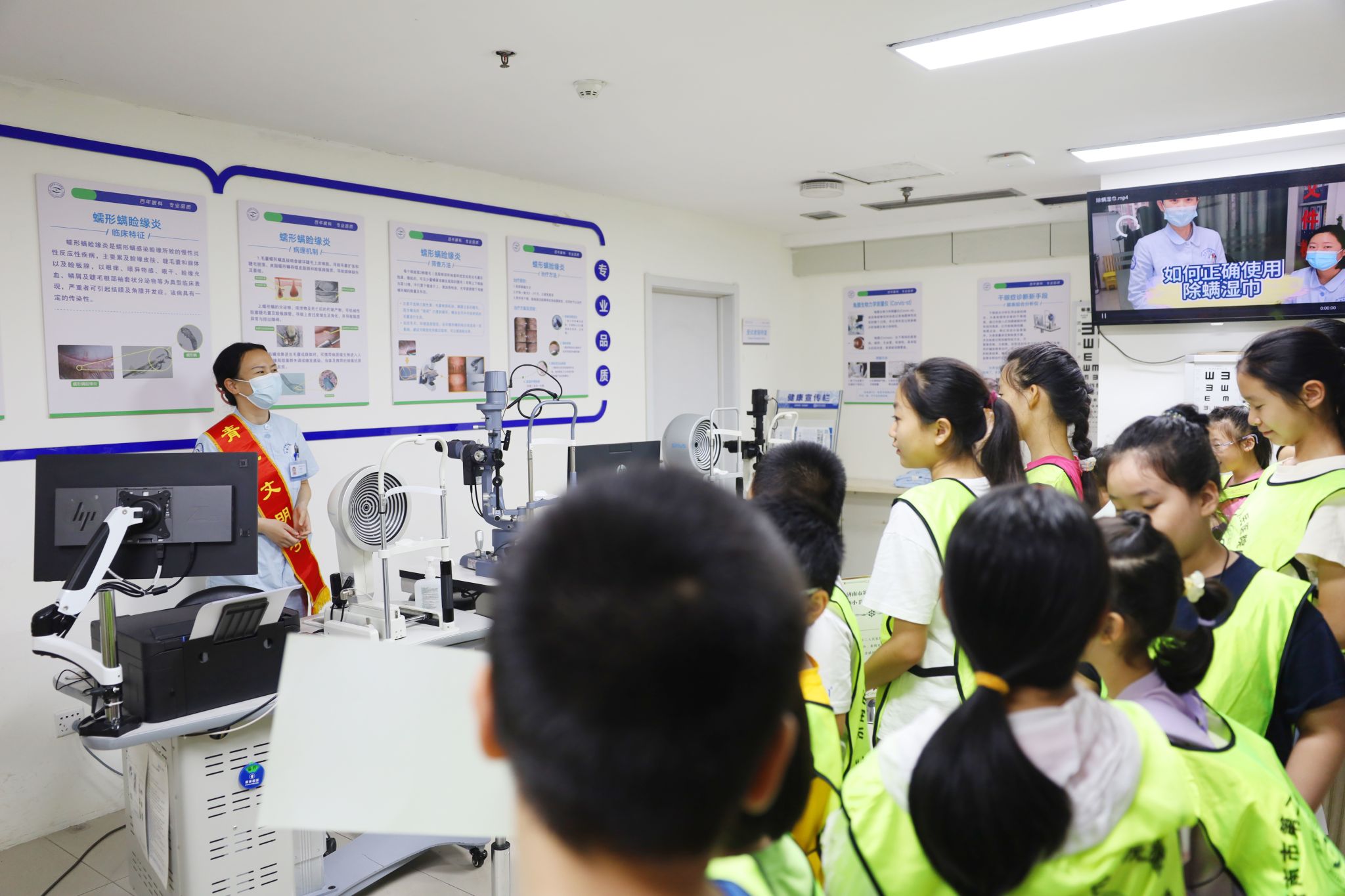 接下来的医学探索之旅与书信文化体验环节更是让孩子们大开眼界。在干眼门诊,孩子们在专业人员的带领下,了解了干眼症的成因与常见检查方法,还在显微镜下观察了蠕形螨,对眼部健康有了更直观的认识。在医院儿童眼病门诊,孩子们分组进行了基础视力检查与验光体验,学会了如何解读简单的验光单。