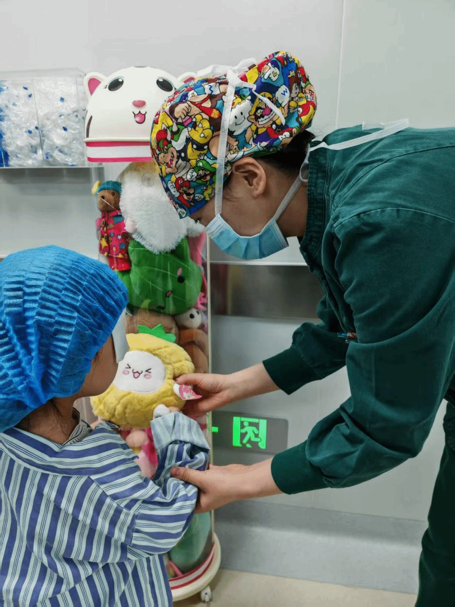 在这里,医务人员从不局限于技术操作,而是从孩子的视角出发,把冰冷的手术室变成充满关怀的空间,让家长的焦虑得以安放。这份“以患者为中心”的坚守,藏在每一次与娃娃的互动里,藏在每一个让孩子安心的细节中,最终化作暖流,让医疗不仅治愈身体,更能温暖心灵,这便是最动人的护理初心。(手术室 李钰 许欣欣)