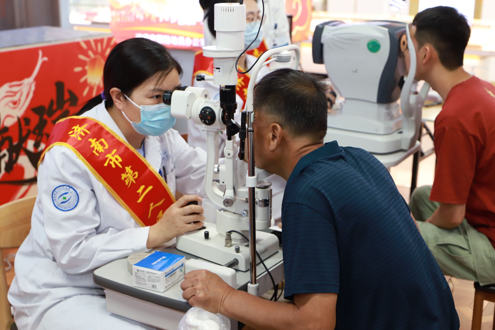 此次义诊,由眼二科(眼底病专业)副主任医师杨晓兰和眼十科(中医眼科)副主任医师邓丽娅亲自带队。下午2点整义诊正式开始,杨晓兰医师带领医护人员迅速投入到工作中,为到场的市民提供了全方位的眼部检查服务,涵盖视力检查、裂隙灯检查、电脑验光、眼底检查等多个项目。她以精湛的医术和认真负责的态度,耐心细致地为每一位参与者进行检查。面对群众的疑问,她总是微笑着解答,并根据检查结果给出个性化的诊疗建议和日常护眼指导。与此同时,本次活动特别增设了中医诊疗服务环节。中医眼科副主任医师邓丽娅亲自坐诊,为群众带来了脉诊、耳穴压豆等中医特色诊疗服务。她通过脉诊判断他们的身体状况和眼部问题,再运用耳穴压豆等传统疗法进行调理,让群众切身感受了传统中医疗法的独特魅力。除了专业的医疗服务,志愿者们还向群众发放了宣教材料,并用通俗易懂的语言,向他们普及了基础性眼科健康知识,大力倡导科学用眼、终身护眼的理念。