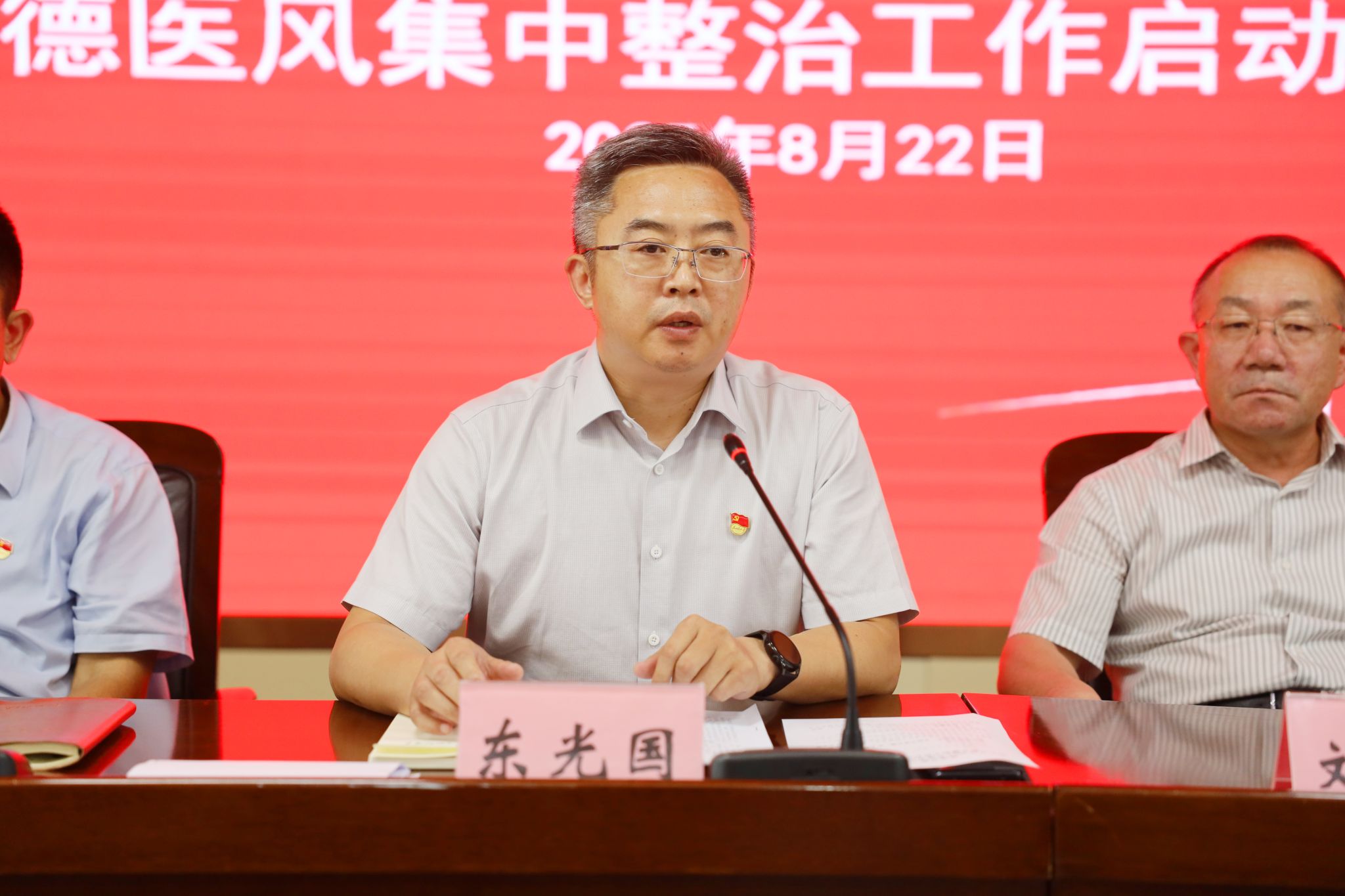 党委书记东光国对医院2025年医德医风专项整治工作提出四点要求:一是强化责任落实,医院班子成员履行“一岗双责”,科主任、护士长担当“第一责任人”,全体医护人员主动融入整治;二是将医德医风纳入科室常态学习内容,让行风建设制度从“软要求”变“硬约束”;三是丰富教育形式,通过案例警示、实地参观等开展“沉浸式”学习,培育廉政文化;四是构建闭环管理机制,建立问题台账并动态更新,聚焦重点开展常态化监督,对苗头性问题早发现、早干预。