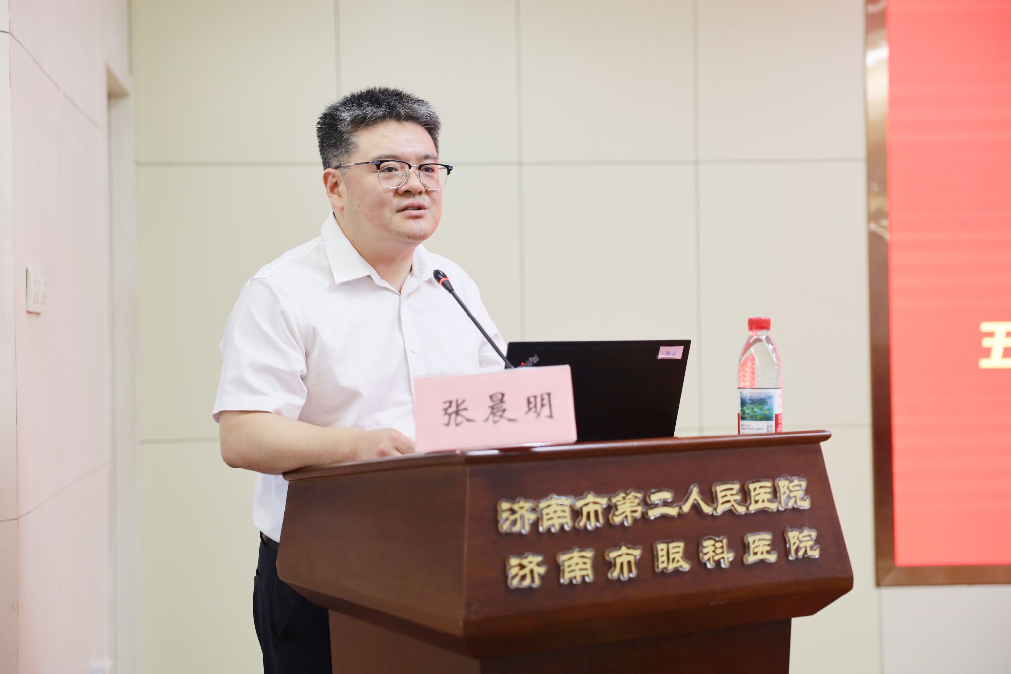 院党委委员张晨明在开幕式上致欢迎辞,他代表院领导班子向参会专家及护理同仁表示诚挚问候。他表示,作为主委单位,医院将持续全力支持济南护理学会及五官科护理专委会的工作,为专科护理发展赋能助力。