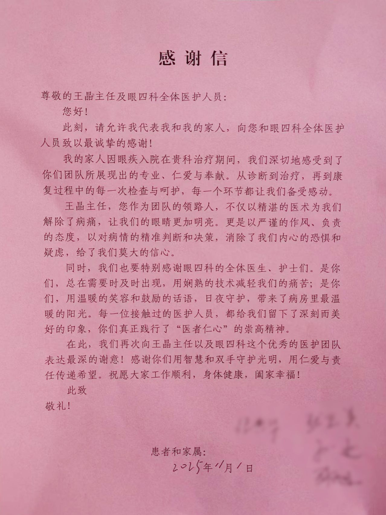 )眼四科(白内障一科)收到了一封满含深情的感谢信,落款是四位来自沂源县的高龄老姐妹。