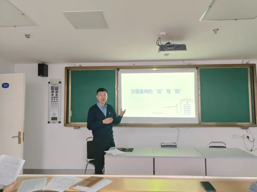 宣传科副主任郭兆瑞以《涉医宣传的“攻”与“防”》为主题,从常见的涉医舆情入手,深入解析了医疗工作中医务人员服务态度、医院形象、诊疗费用、医疗流程等对于舆论的潜在影响,以及生活中涉医舆论的真实案例。讲座指出,医务人员日常工作中要注意专业形象、工作流程以及与病患之间的语言交流,与医院宣传部门紧密配合做好医疗科普宣传工作。同时,医护人员在工作要树立素材意识,掌握素材发掘技巧,有力有效地宣传专业专家,推广科普知识,更好服务大众。