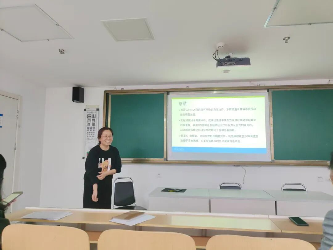 眼十科(中医眼科)副主任医师陈丽丽作了题为《缺血性视神经病变的中医治疗》的专题讲座。陈丽丽系统介绍了缺血性视神经病变这一疾病的分类及发病特点、危险因素与临床特征,深入分析了中医对缺血性视神经病变的认识。根据中医理论,缺血性视神经病变可分为气滞血瘀型、气虚血瘀型、肝郁气滞型、肝肾不足型,针对分型应用不同的处方治疗。方剂结合传统医学的针刺治疗疏通经络、调节气血、扶正祛邪,以及艾条灸、核桃灸、脐灸等多种疗法,中西医结合治疗取得了满意的疗效。