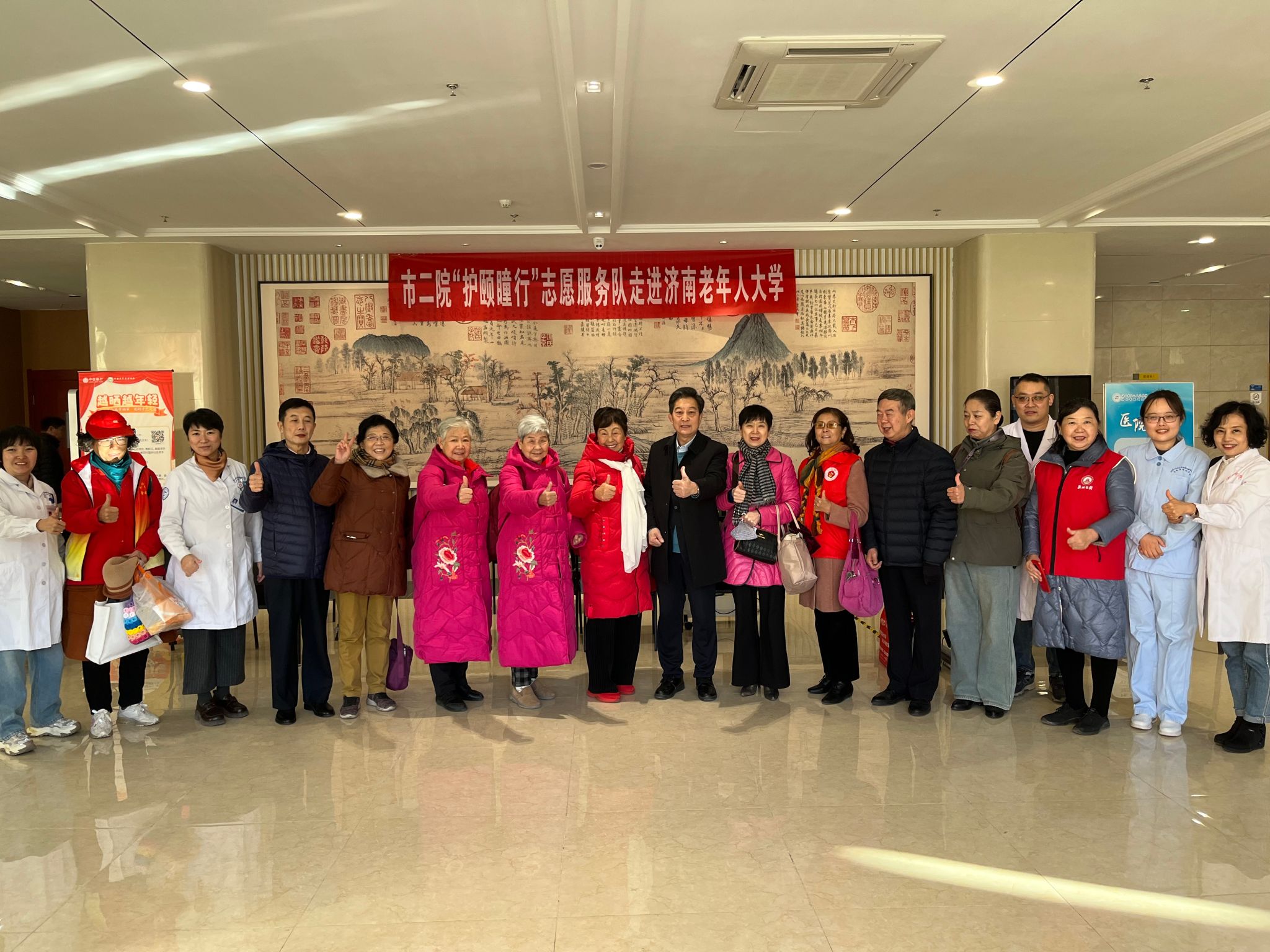 )携手济南老年人大学,成功举办了“护颐瞳行”眼健康义诊志愿服务活动。此次活动以“汇聚志愿力量·共建美好生活”为主题,旨在为老年大学学员提供便捷的医疗服务,普及眼健康知识,提升老年人的健康素养。