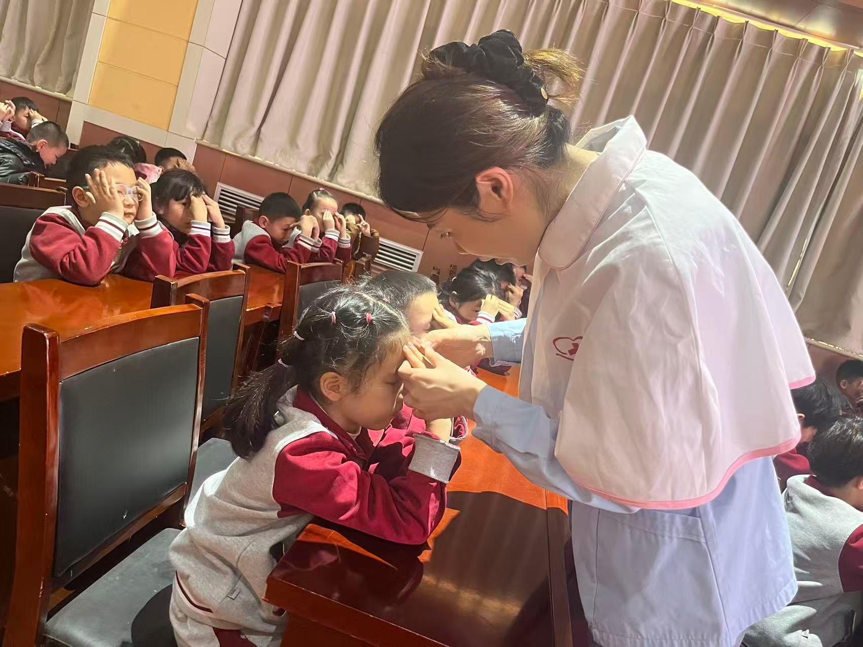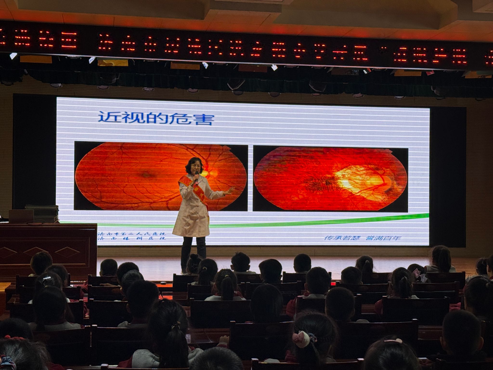 )“护瞳行动”志愿服务队走进济南市历城区洪家楼小学,为学校一年级师生带来了一场别开生面的护眼知识讲座,为孩子们的视力健康保驾护航。