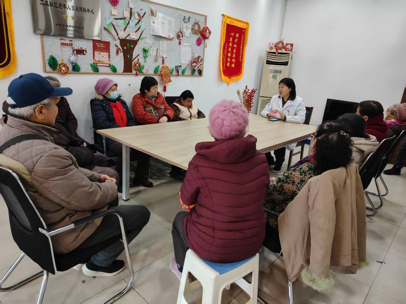 活动现场暖意融融,闻讯而来的居民有序排队、咨询问诊,内科团队分工明确、忙而不乱。副主任医师张丽聚焦社区高发的糖尿病、高血压等慢性病,开展了一场通俗易懂的健康科普讲座。她结合临床案例,从疾病成因、早期症状、规范用药到饮食调理、运动保健等方面进行系统讲解,特别提醒老年居民关注冬季血压血糖波动,纠正日常保健中的认知误区,让居民们听得懂、记得住、用得上。