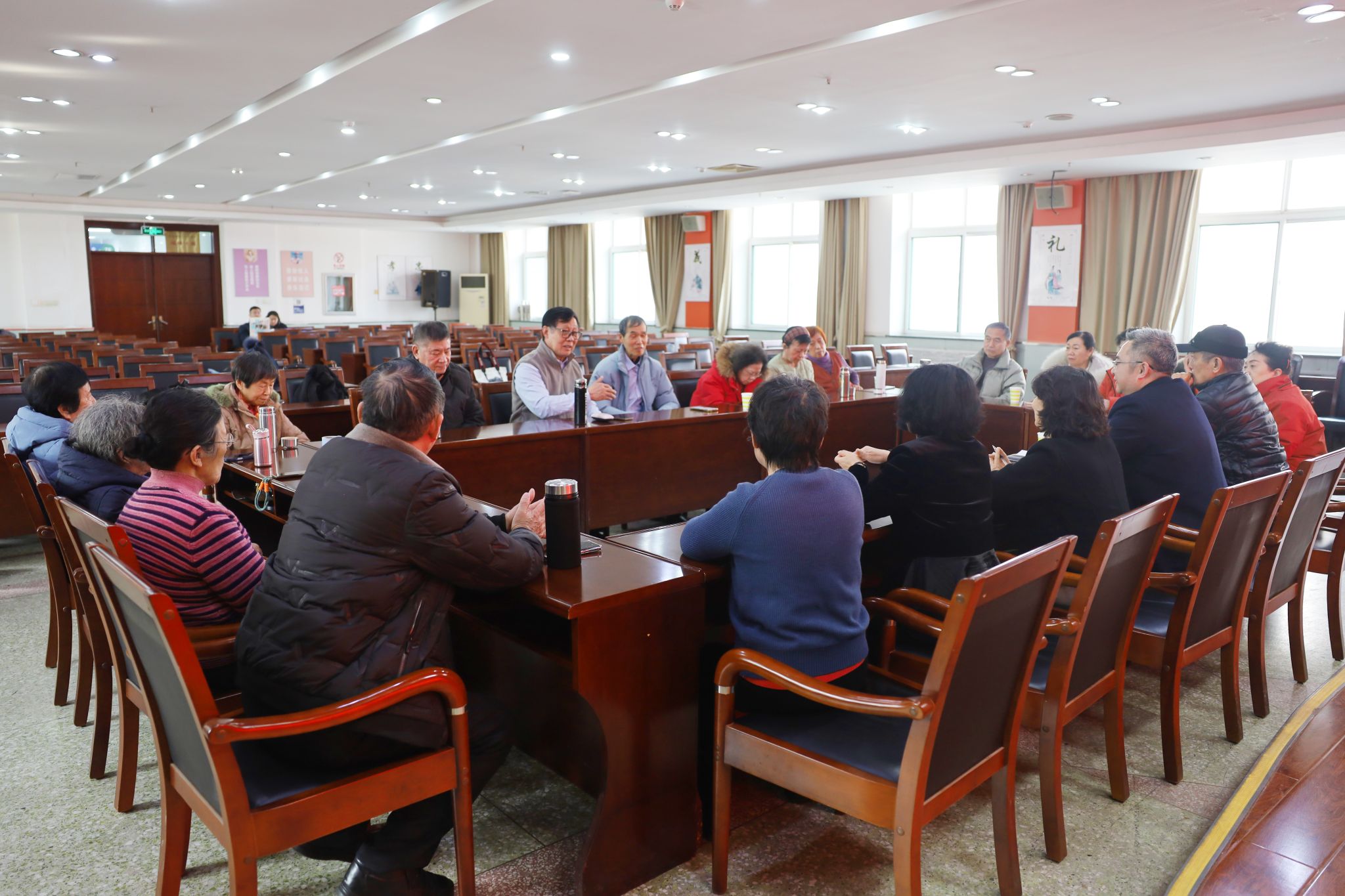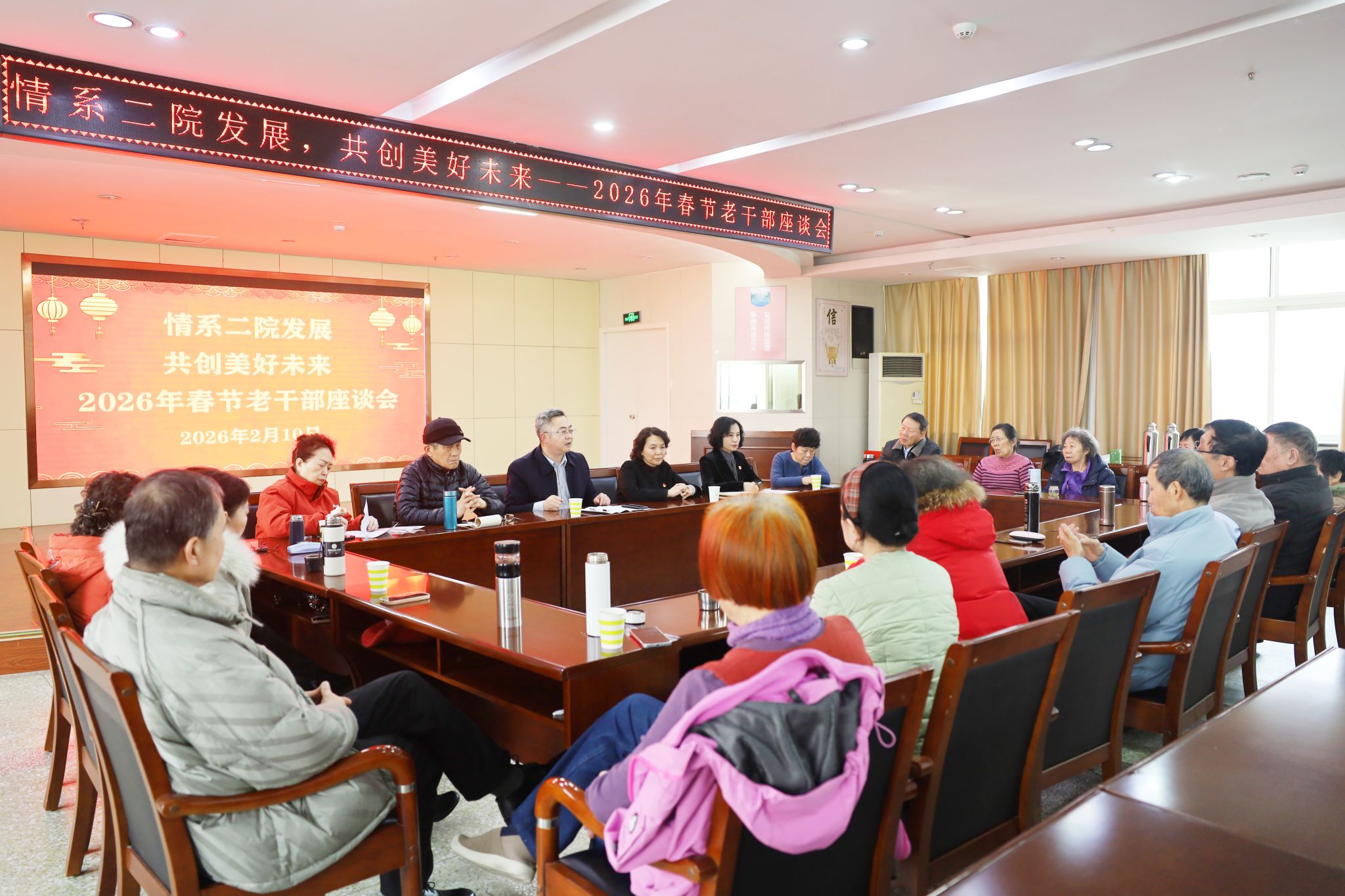 )召开离退休干部座谈会。医院党委书记东光国、纪委书记刘伟与老干部代表欢聚一堂,共叙情谊,同谋发展,向老同志们致以新春的问候和崇高的敬意。