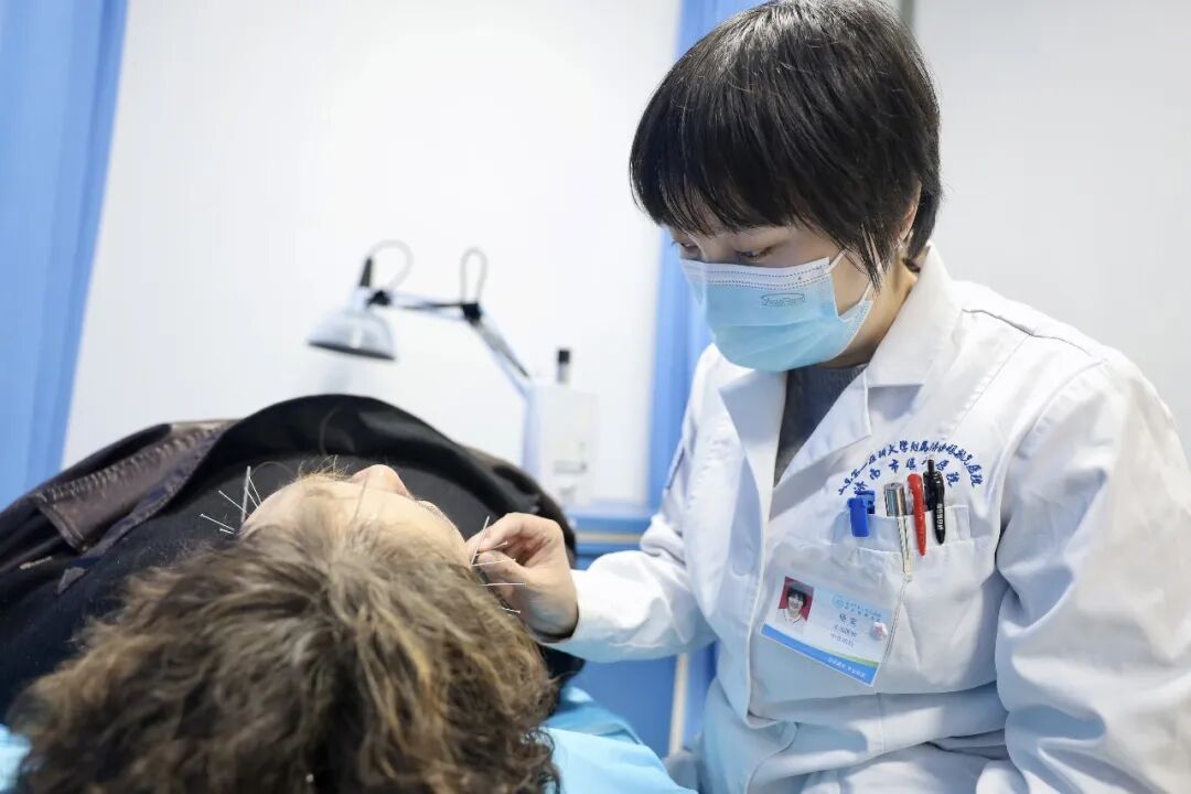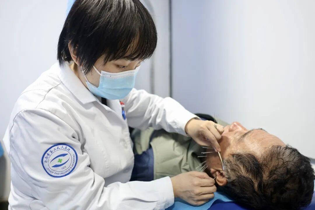 颊针经过全面的体格检查,找到靶点,在面部施针、检查、调整,留针30分钟左右。