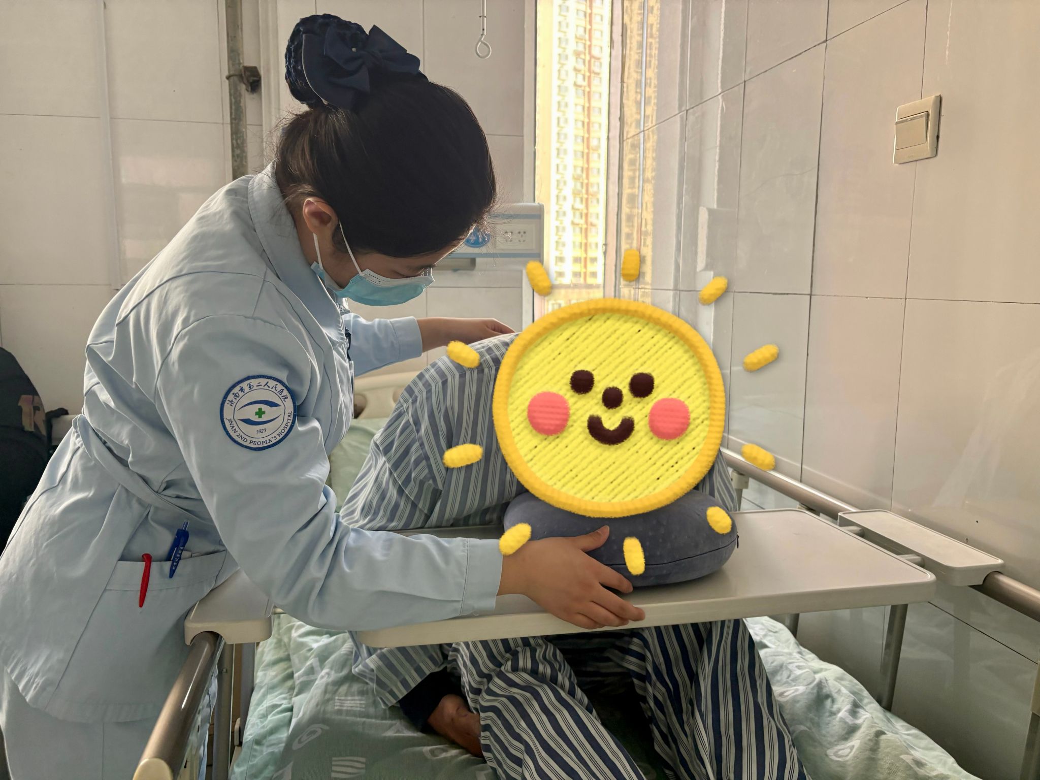为了让杨大爷术后恢复得更好、更快,眼二科的责任护士用图文结合、简单易懂的方式结合杨大爷的手术情况,讲解俯卧位的重要性,手把手教杨大爷正确使用U型枕,既保证正常休息,又避免了错误姿势影响手术。通过细心安抚情绪,用专业和细心帮助杨大爷记住要点、好好配合,促进眼睛视力更快的恢复。