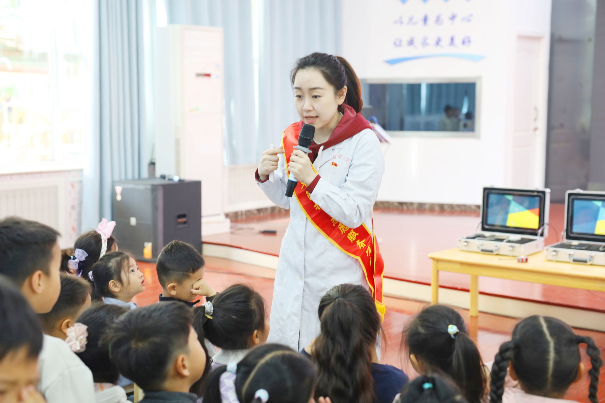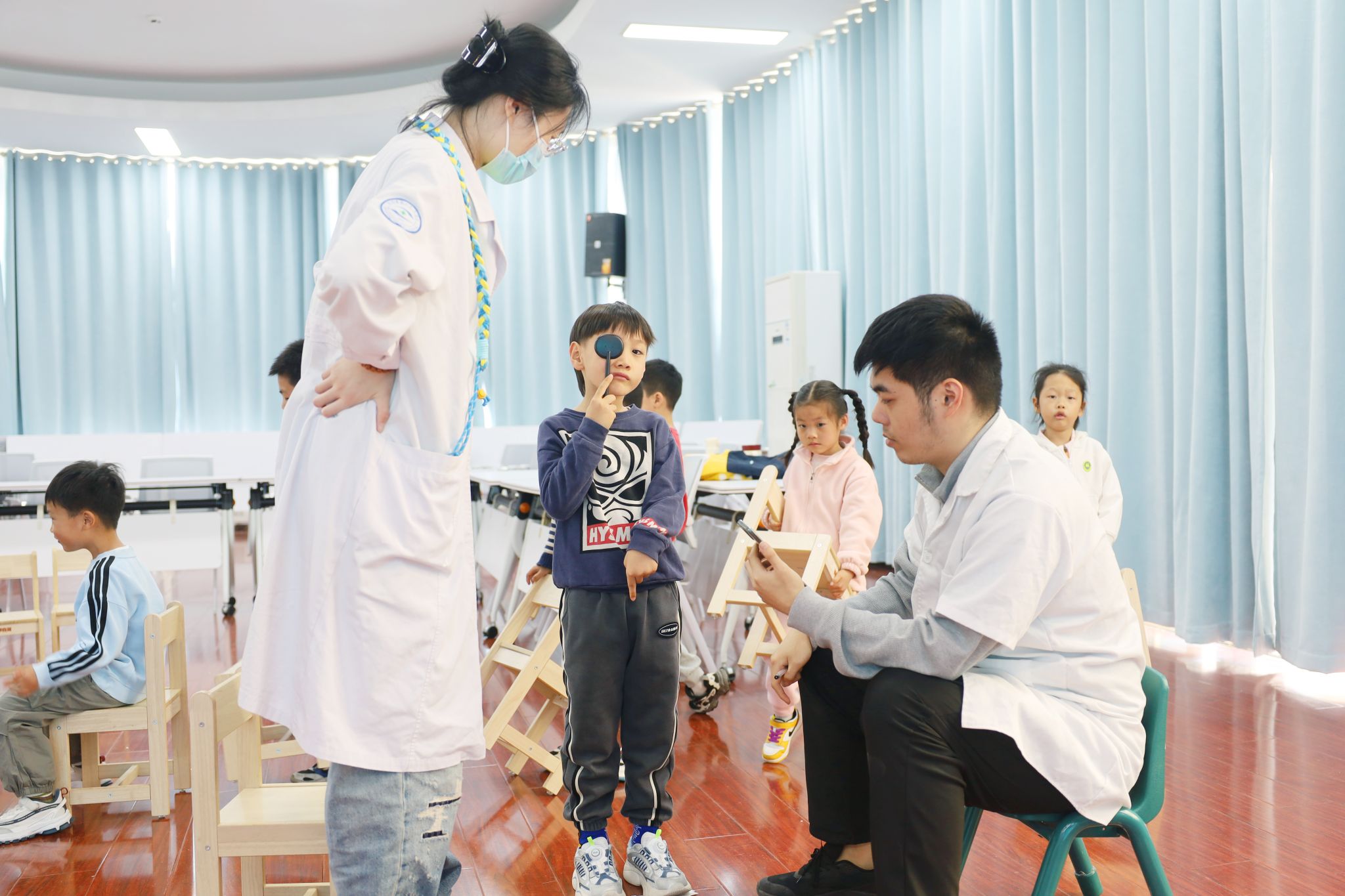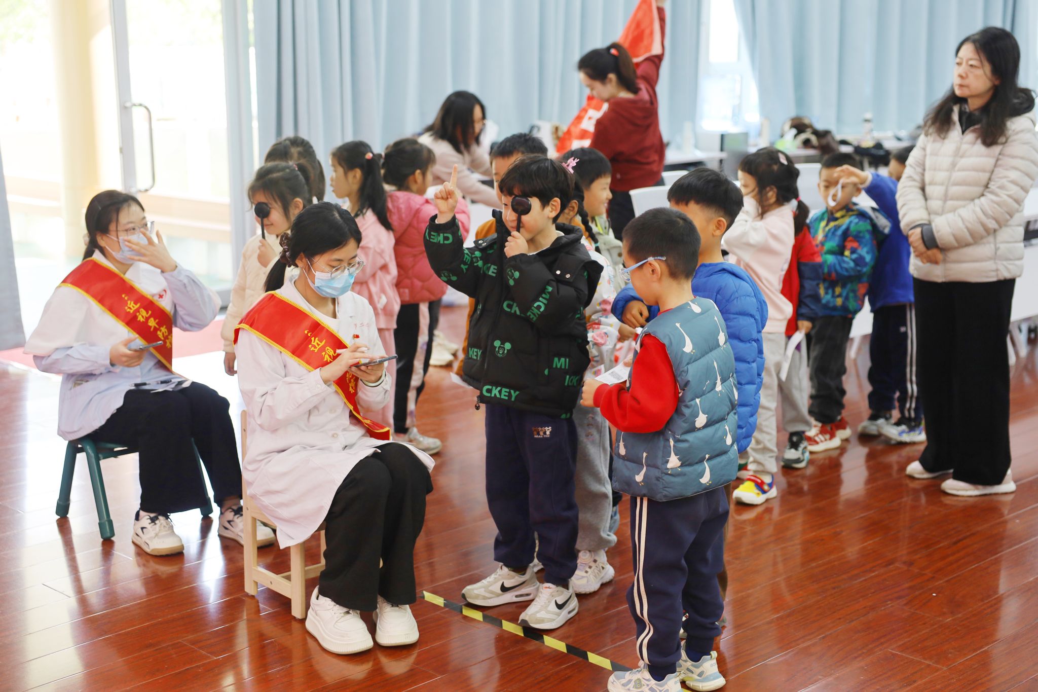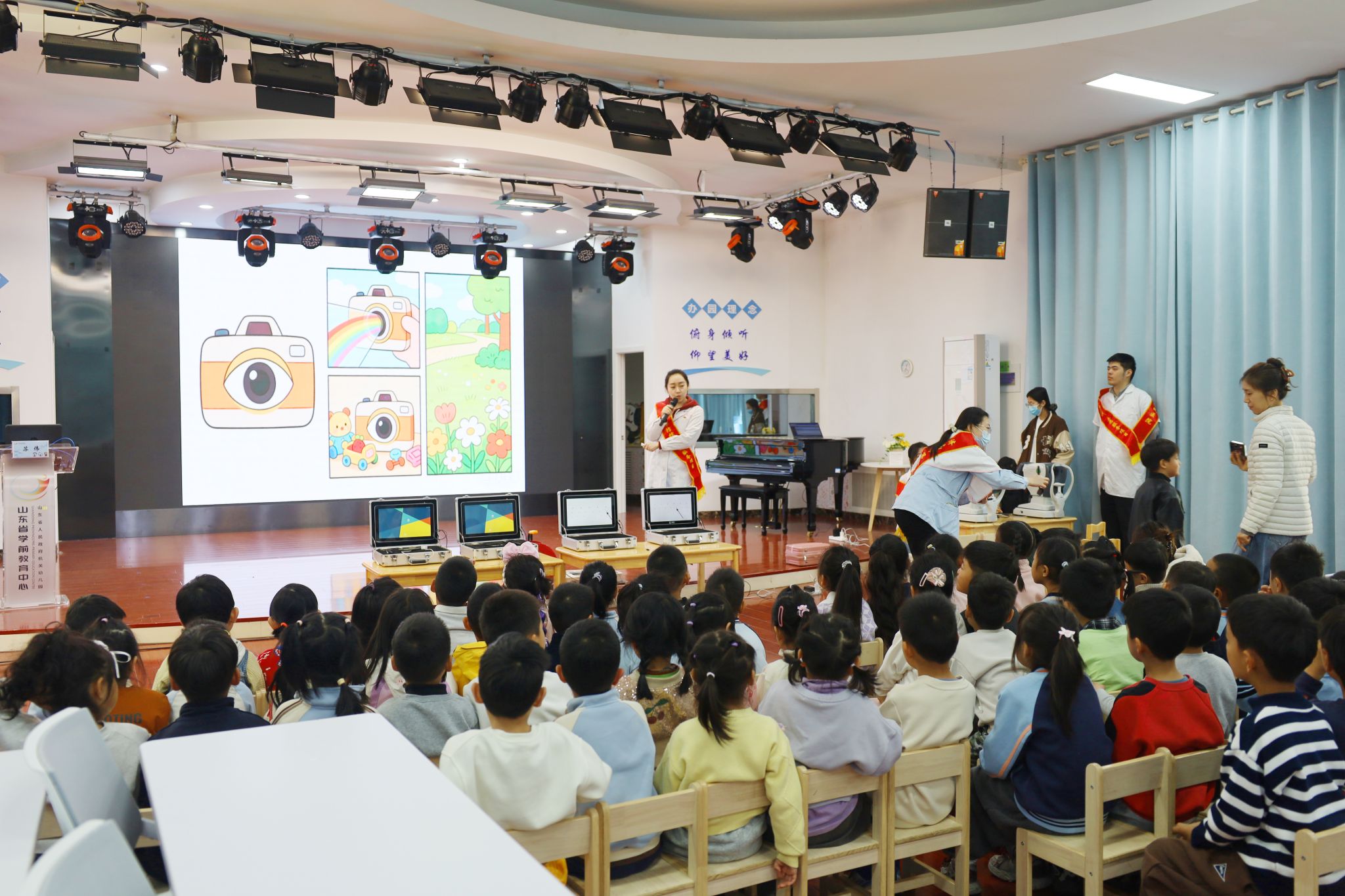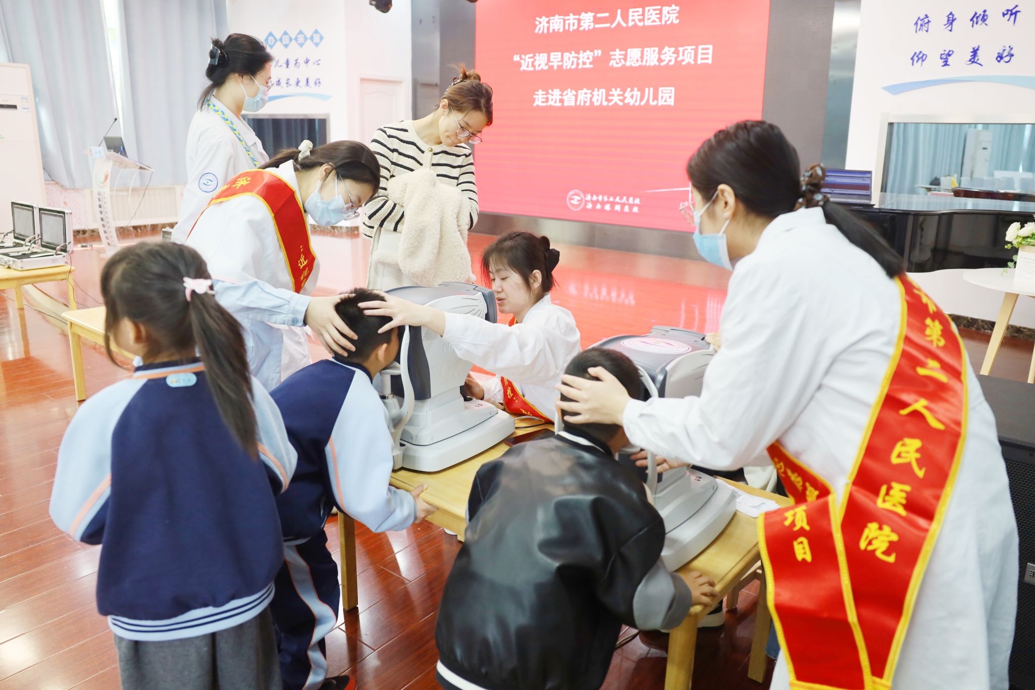 )“近视早防控”志愿服务项目走进山东省人民政府机关幼儿园,为孩子们带来集科普宣讲、眼保健操教学、视力筛查、医学验光、健康建档于一体的全方位爱眼护眼公益服务,用专业与爱心守护幼儿清晰“视”界,点亮光明成长之路。