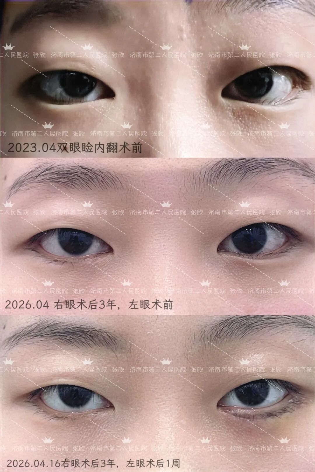 三年时光匆匆而过。当年的青涩学子已然成长为从容大方的大三学生。近期,小琳主动来到市眼科医院(市二院),找到曾经的主治医生,坚定地提出要完成左眼睑内翻矫正手术。