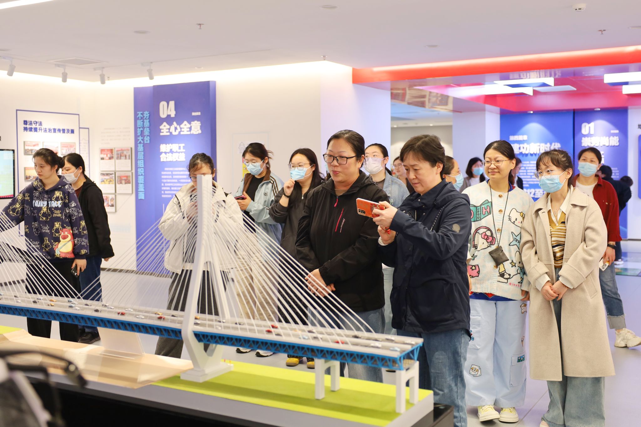在济南工人运动历史展览馆内,大家跟随讲解员的步伐,沿着“砸碎铁锁链”“建设新中国”“改革立潮头”“建功新时代”四大主题篇章,回顾济南工人阶级百年奋斗历程。展馆综合运用动态屏幕、全息影像、裸眼3D等科技手段,结合历史实物与艺术造景,生动再现了工人阶级在党的领导下争取民族独立、推动国家建设的壮丽史诗。一幅幅珍贵影像、一件件历史实物,让职工们深刻感受到“劳动创造历史”的磅礴力量。
