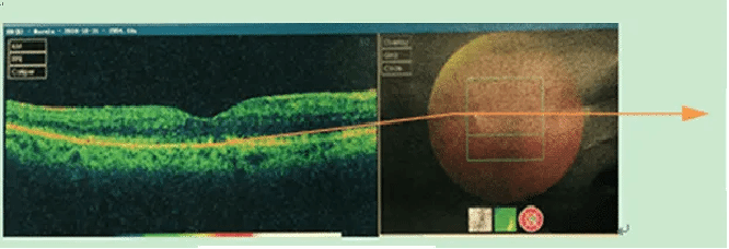 宿艳副主任说,曾经有一位50岁的女性患者老年性黄斑变性引起黄斑水肿,当时患者诉说右眼看东西模糊,视物变形变小,眼前常有黑影浮现。多次抗VEGF治疗后,病情反复。发病10个月时来就诊,经中药、针刺治疗,期间抗VEGF治疗1次,半年后眼底好转。光学相干断层扫描(OCT)检查发现眼底还有出血,黄斑中心凹处高起水肿。经过3个多月的中药治疗,患者病情大有好转,水肿明显减轻,OCT检查可见黄斑水肿减轻。半年后水肿大部分消失,视力提高到0.4到0.6。