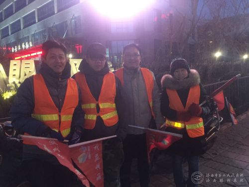数九寒天,天色渐晚,道路上的人们裹着厚厚的棉衣行色匆匆。但在经四纬六路路口,济南市二院文明交通志愿者们却在寒冷天气中给行人带来一丝温暖。志愿者们忍者刺骨的寒冷,身着红色马甲,手持文明劝导旗,站在路口各...