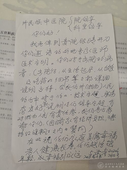 “患者彭继风,失明多年,畏惧手术!经张晨明主任开导和鼓励,上周三顺利完成手术!今天复查,康复良好!患者及家属非常满意,今天下午专门来科室送上感谢信。”这是湘西州民族中医院中层群中的一段对话内容,感谢信... -