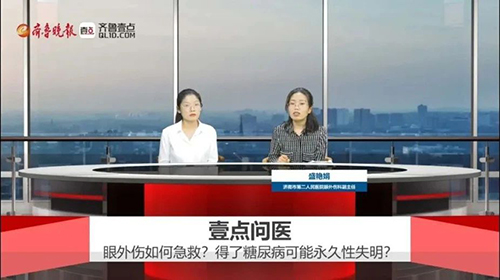9月18日下午,萝莉社 眼外伤科副主任、副主任医师盛艳娟受齐鲁晚报•齐鲁壹点的邀请,参与了《壹点问医》栏目的直播录制。 盛艳娟主任在节目中,就眼外伤、泪道阻塞、糖尿病眼底病变等眼科常... -