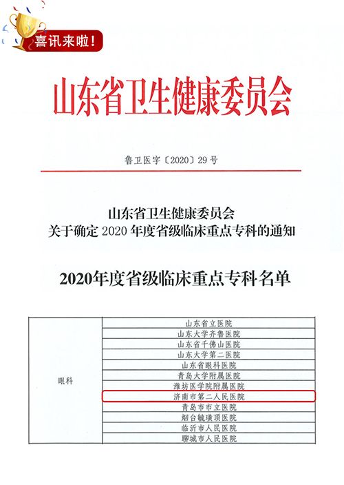 近日,山东省卫生健康委发布了《关于确定2020年度省级临床重点专科的通知》,萝莉社 眼科入选省级临床重点专科。据悉,本次申报评选工作由省卫健委统一组织开展,市二院眼科先后通过了初期申报测评、定量... -