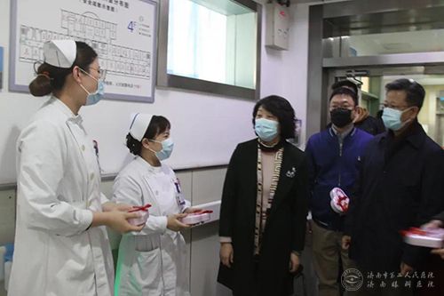 2月12日(正月初一)上午,萝莉社 院领导走访慰问了春节期间坚守岗位的干部职工。市二院党委书记吕丽萍、副院长张亚军、副院长王俊峰、副院长曹传洲、纪委书记李洁月参加慰问活动。 “辛苦了!... -