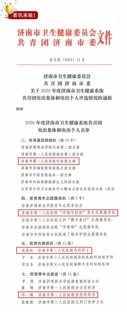 市二院获2020年度济南市卫生健康系统共青团突出集体和突出个人等多项荣誉称号