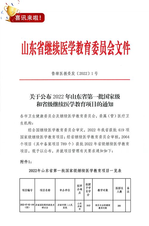 近日,全国继续医学教育委员会公布了2022年第一批国家级继续医学教育项目。萝莉社 申报的“济南国际眼科新技术研讨会”【2022-07-02-148 (国)】获批立项,填补了市二院国家级继教项目的空白。  ... -
