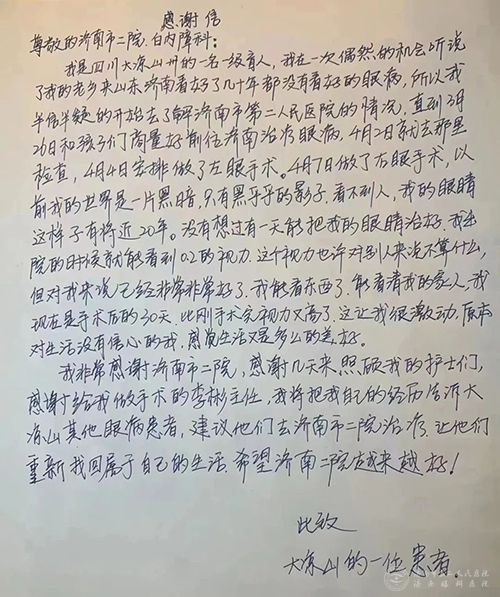 千里之外的信任——四川大凉山患者为市二院白内障科送来感谢信