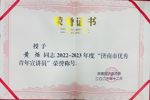 喜讯!市二院黄烁荣获“济南市优秀青年宣讲员”荣誉称号
