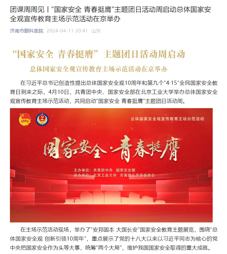 济南市二院团组织围绕“国家安全·青春挺膺”开展主题团日系列活动