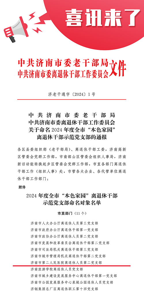 济南市二院离退休人员第二党支部获评全市“本色家园”离退休干部示范党支部