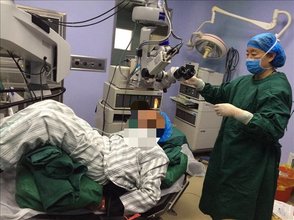 市二院眼科专家全程站立为驼背残疾老人成功手术