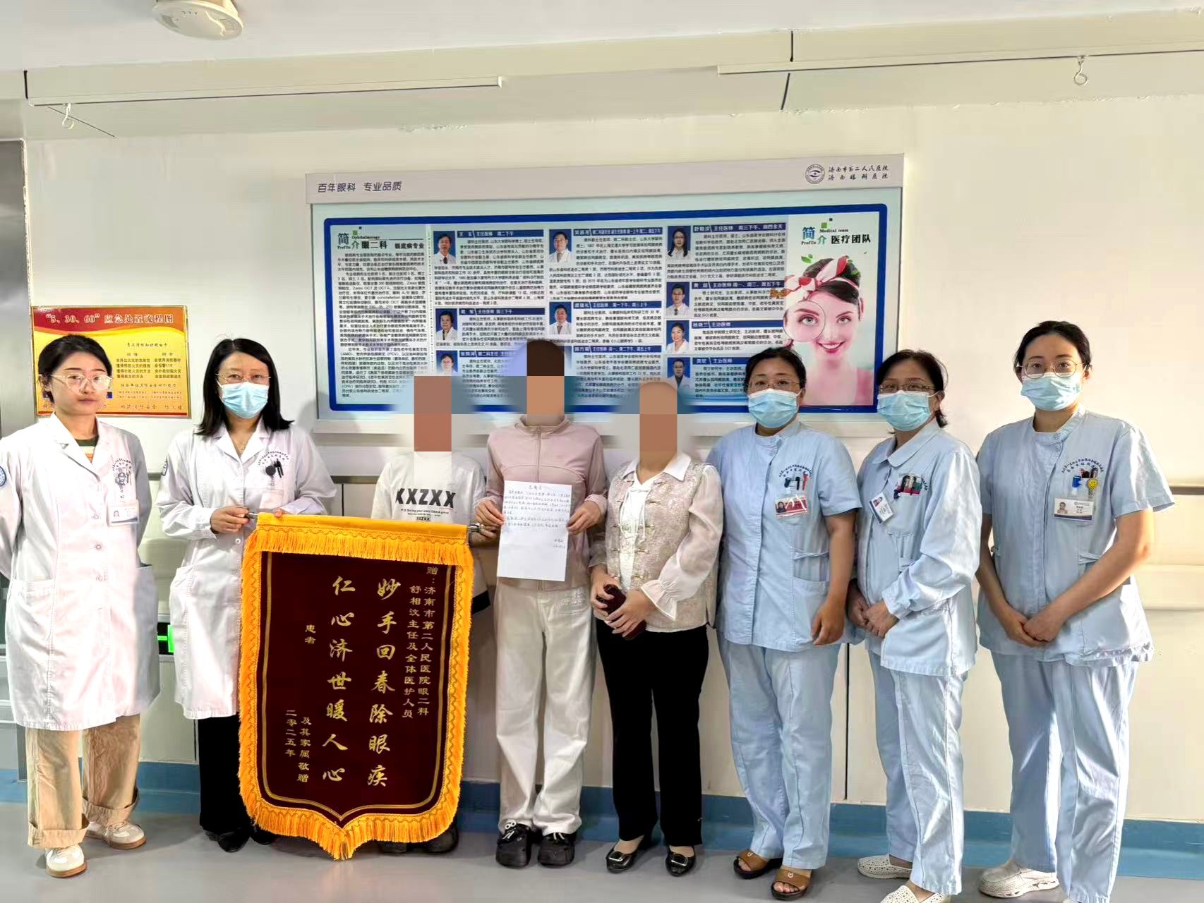 近日,张老师一家人将锦旗送到萝莉社 (萝莉社 ),感谢眼二科(眼底病专业)团队为一双儿女守护光明。三个月前,张老师的女儿最先出现了视力异常,看东西时眼前总有黑影遮挡,还伴有闪光感。焦急的父母带着她来到市眼科医院(市二院)眼二科就诊,接诊的正是经验丰富的主任医师舒相汶。舒主任耐心询问症状,细致地为女儿做了眼底检查,最终确诊为“孔源性视网膜脱离”。“视网膜脱离就像相机的底片掉了,必须尽快手术复位,... -
