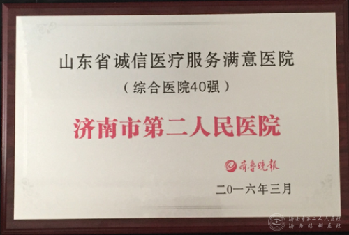 市二院获评“山东省诚信医疗服务满意医院”称号